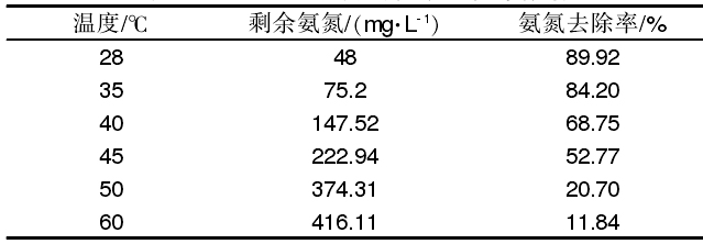 3.5火電廠脫硫廢水試驗中反應(yīng)溫度對氨氮去除率的影響