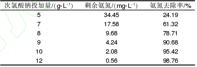 表5次氯酸鈉投加量對氨氮去除率的影響