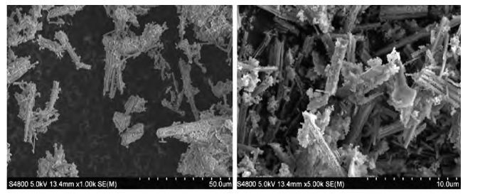 (2)XRD及SEM分析表明,氨氮去除過程中產(chǎn)生的白色沉淀物為磷酸氨鎂鹽,其晶體結(jié)構(gòu)為斜方形,排列較為緊密。
