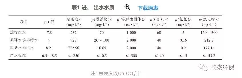 工程回用水處理整體回收率高達98%, 用于回用的產水最后出水中鹽的質量濃度為265 mg / L,達到產水水質要求。 最終排放到蒸發塘的含鹽濃漿約為3 m3/ h, 在蒸發塘蒸發后, 實現“零排放”。