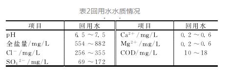 發電廠末端廢水量約120m³/h,全鹽量為17600~24800mg/L,經藥劑軟化預處理以及膜濃縮減量處理后,DTROⅠ系統和DTROⅡ系統濃水產生量分別為8.1m³/h和7.5m³/h,分別進入混鹽結晶系統和精制鹽結晶系統進行固化處理。整套系統產生的回用水水質如表2所示。雖然回用水也具有一定的含鹽量,但是與該廠再生水石灰處理系統出水相比,含鹽量明顯偏低,回用水的硬度也較低,滿足冷卻塔補充水的水質要求,末端廢水經處理后全部回用作為循環冷卻水補充水。