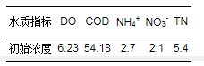 按照污水處理廠一級B出水標準配制模擬污水廠尾水, 初始水質指標測定結果見表 1.試驗過程全部采用HJ標準測定NH4+-N、NO3--N和TN等水質指標.