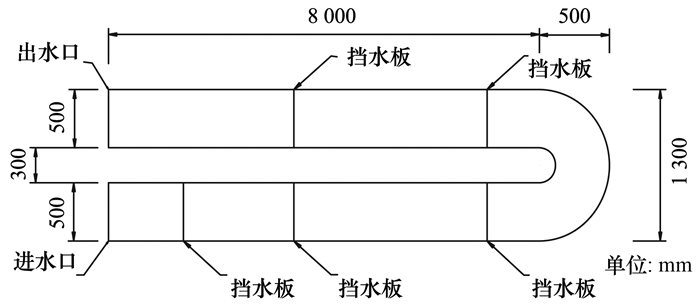 (1) 進水口處設置有高度為300 mm的擋板, 形成存水槽以保證河道內的水流穩定, 避免進水對河道內產生過大攪動.