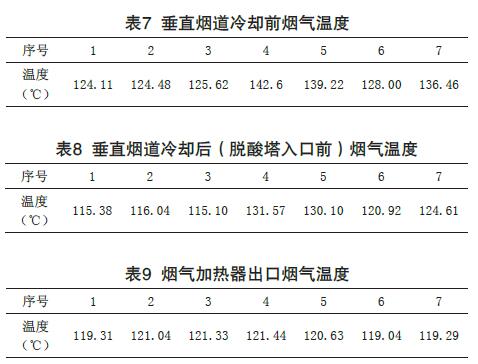脫酸塔所用材質為碳鋼,內襯玻璃鱗片,最高耐受溫度150℃,溫度過高會破壞脫酸塔的內襯防腐層,直接影響脫酸塔的安全運行,因此必須采取降溫措施,嚴格控制入塔溫度。在入口垂直煙道處設置了冷卻裝置,冷卻前的煙氣溫度不超過150℃,經冷卻后的煙氣溫度基本控制在130℃以下,詳細運行參數見表7、表8。