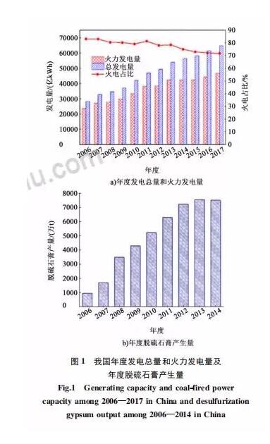 預處理火力發(fā)電是我國最重要的電力組成,盡管近10年來火電占比逐漸降低,但火電發(fā)電量和火電設備裝機量依然在逐年增加[圖1a) ]。隨著煙氣排放管理與控制日益嚴格,煙氣脫硫是火電廠不可或缺的過程。煙氣脫硫技術(shù)主要包括前端脫硫、干法、半干法和濕法脫硫,其中濕法脫硫具有反應快、效率高等優(yōu)點,全球應用占比達85%。濕法脫硫采用液態(tài)吸收劑吸收SO2和其它污染組分,主要包括鈉堿法、氨法、氧化鎂法、有機胺法、石灰石-石膏法等,其中石灰石-石膏法由于操作簡單、效率高、技術(shù)成熟、穩(wěn)定性好而成為最主流的脫硫技術(shù),約90%發(fā)達國家的火電廠采用該技術(shù)。我國火電廠主要采用石灰石-石膏法脫硫,脫硫石膏產(chǎn)量逐年增加[圖1b) ],盡管濕法脫硫產(chǎn)生的脫硫廢水量少,但污染負荷高、處理難度大,已成為電廠亟待解決的難題之一。
