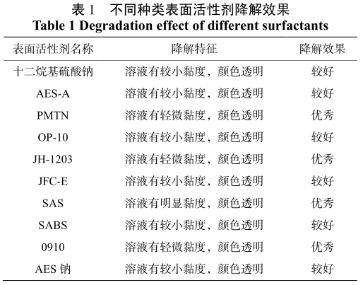 表面活性劑能夠減輕聚合物黏度,對聚合物起到降解作用。因此,對表面活性劑迚行了專門的調配。