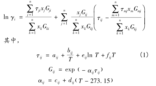 NRTL-RK 模型的表達式如下: