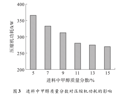 3. 1 進料中甲醇質量分數對壓縮機功耗影響