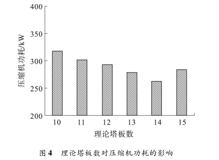 3. 2 理論塔板數對壓縮機功耗影響