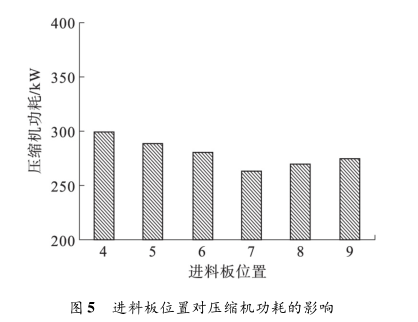 3. 3 進料板位置對壓縮機功耗影響