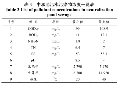 本污水處理場的各部分含鹽污水進水水質指標見表 1-3 各部分含鹽污水污染物濃度一覽表。