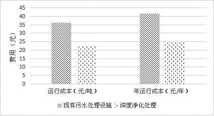 圖 1 現有污水處理設施與深度凈化處理成本對比圖