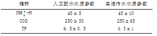 表 2 人工配水和生活污水水質(zhì)組分/ mg·L - 1
