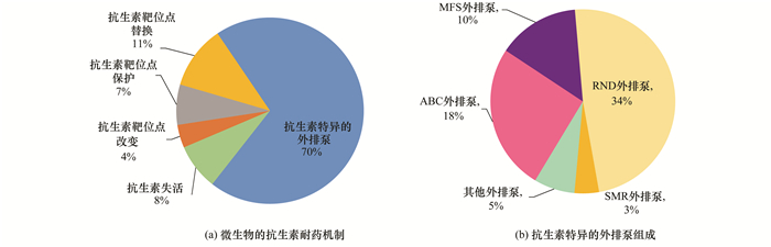 (a)微生物的抗生素耐藥機制; (b)抗生素特異的外排泵組成