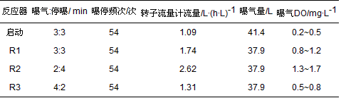 R0、R1、R2和R3反應器每天運行4個周期, 每個周期6 h, 其中包括10 min進水, 厭氧攪拌、曝氣攪拌、7 min沉降和10 min排水閑置.SBR反應器運行參數見表 1.