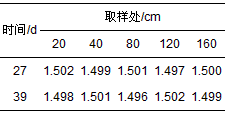 在濾柱運(yùn)行至27 d和39 d時(shí)分別取20、40、80、120和160 cm處的濾料, 經(jīng)高溫滅菌后進(jìn)行吸附性能分析實(shí)驗(yàn), 由表 1分析知, 原氨氮濃度為1.500 mg·L-1, 各處濾料吸附后氨氮濃度均約為1.500 mg·L-1, 故濾料在27 d時(shí)已經(jīng)吸附飽和, 此后濾柱中的氮素?fù)p失與濾料的吸附作用無(wú)關(guān), 而是由ANAMMOX過(guò)程造成的.結(jié)合圖 5分析知, 濾柱在39 d時(shí)特征值約為1.24, 在1<ΔNH4+-N/ΔNO3--N<8的理論范圍內(nèi), 且連續(xù)穩(wěn)定.因此, 低溫生物除鐵錳硝化耦合CANON工藝經(jīng)過(guò)40 d的培養(yǎng)啟動(dòng)成功.