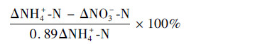 式中, Δ(NH4+-N):進(jìn)出水氨氮變化量, (NH4+-N)in:進(jìn)水氨氮量, (NH4+-N)out:出水氨氮量; Δ(NO2--N):進(jìn)出水亞氮變化量, (NO2--N)out:出水亞氮量, (NO2--N)in:進(jìn)水亞氮量; Δ(NO3--N):進(jìn)出水硝氮變化量, (NO3--N)out:出水硝氮量, (NO3--N)in:進(jìn)水硝氮量; TN:氮素總量, TNin:進(jìn)水氮素總量, TNout:出水氮素總量, TNloss:進(jìn)出水氮素?fù)p失, 上述參數(shù)的單位均為mg·L-1; NLR為氮素?fù)p失率(%).