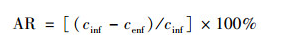 式中, AR是每種抗生素的水相去除率, %;cinf為處理單元進水中抗生素濃度, ng ·L-1;cenf為處理單元出水中抗生素濃度, ng ·L-1.
