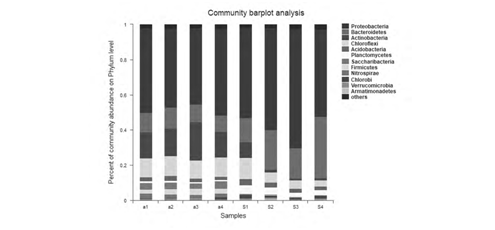 本文中污泥樣品的測(cè)序工作由上海美吉生物醫(yī)藥科技有限公司完成。根據(jù) E.Z.N.A. soil 試劑盒 ( O- mega Bio-tek,Norcross,GA,U.S.) 說明書進(jìn)行總DNA 抽提,DNA 濃度和純度利用NanoDrop2000 進(jìn)行檢測(cè),利用 1%瓊脂糖凝膠電泳檢測(cè) DNA 提取質(zhì)量; 用 338F( 5’-ACTCCTACGGGAGGCAGCAG- 3’) 和806R( 5’-GGACTACHVGGGTWTCTAAT-3’) 引物對(duì) V3 - V4 可變區(qū)進(jìn)行 PCR 擴(kuò)增。利用 Illumina 公司的 MiseqPE300 平臺(tái)進(jìn)行測(cè)序。原始測(cè)序序列使用 Trimmomatic 軟件質(zhì)控,使用FLASH 軟件進(jìn)行拼接。使用的UP-ARSE 軟件( version 7.1) ,根據(jù) 97%的相似度對(duì)序列進(jìn)行OTU 聚類; 使用UCHIME 軟件剔除嵌合體。具體聯(lián)系污水寶或參見http://www.bnynw.com更多相關(guān)技術(shù)文檔。
