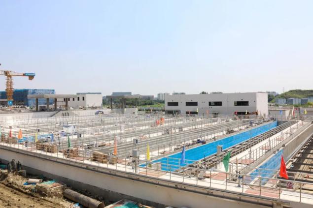 近日,記者實地探訪四期項目現場看到,項目布局規整,多組池體與建筑有序排列,施工設備不停作業,建設者錯峰作業!绊椖孔2024年3月開工以來,團隊始終保持‘大干快上’的勁頭。目前主體結構已全面完工,設備安裝調試進入收尾階段。”蔣宇亮介紹道。