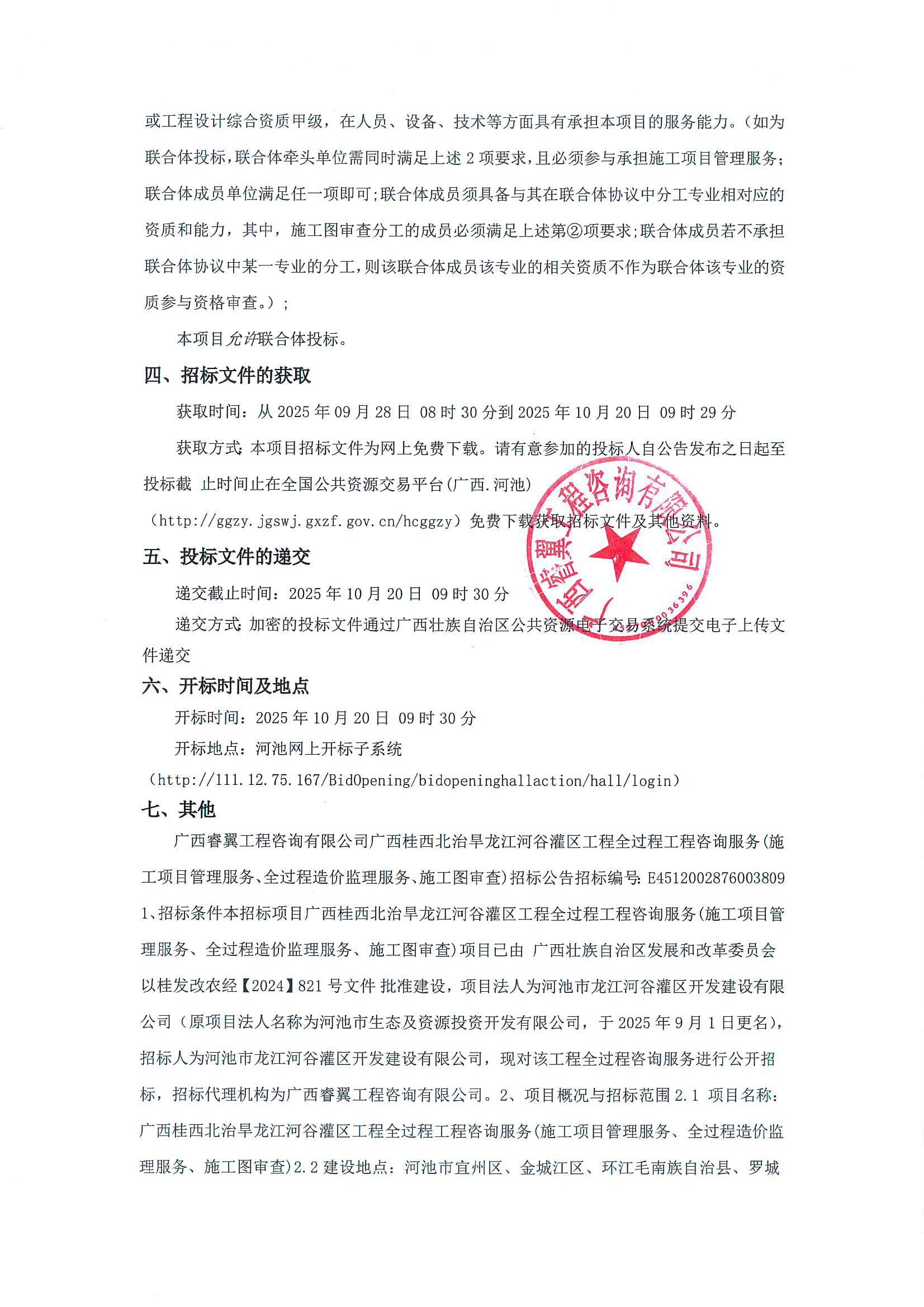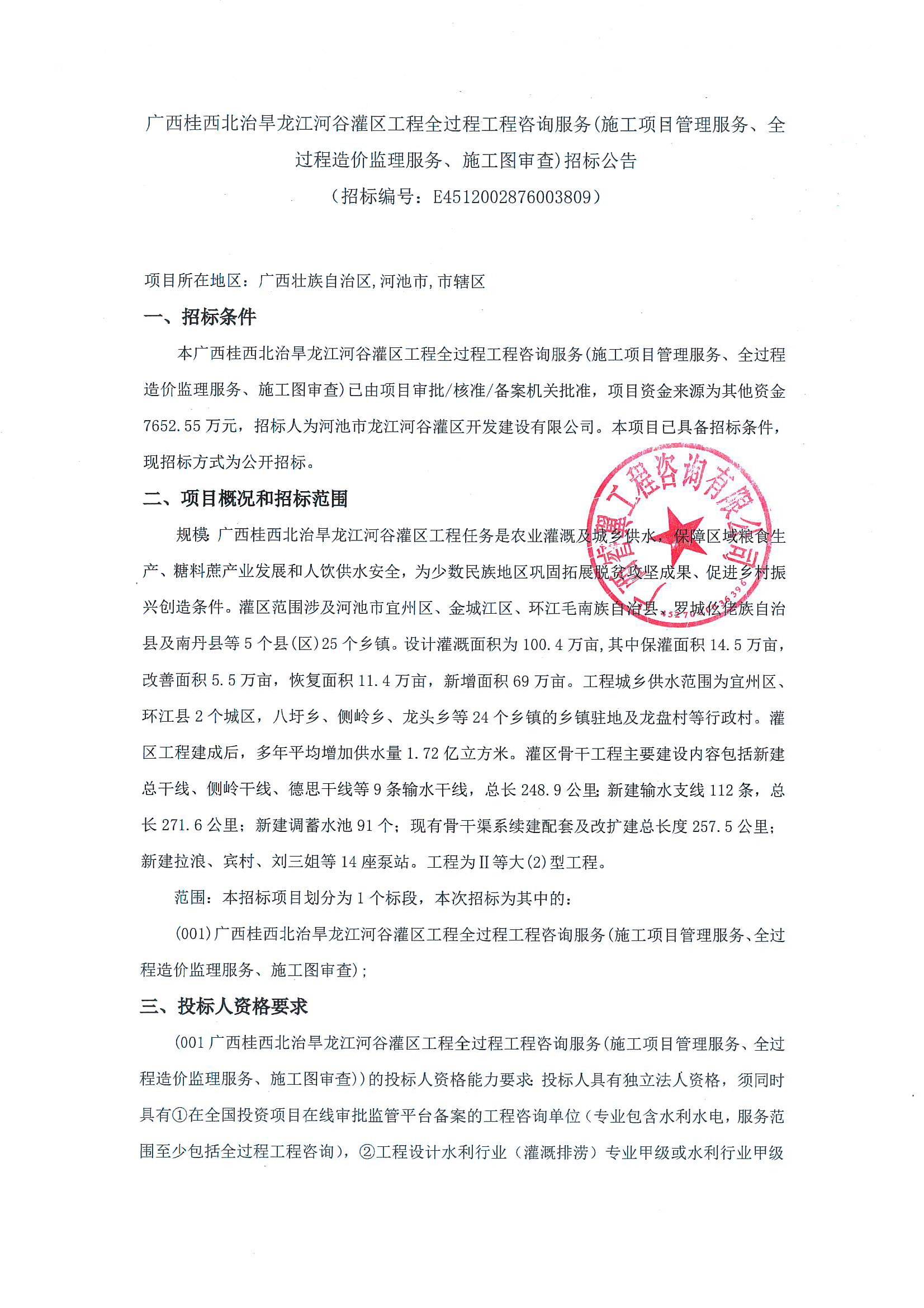 廣西桂西北治旱龍江河谷灌區工程全過程工程咨詢服務(施工項目管理服務、全過程造價監理...