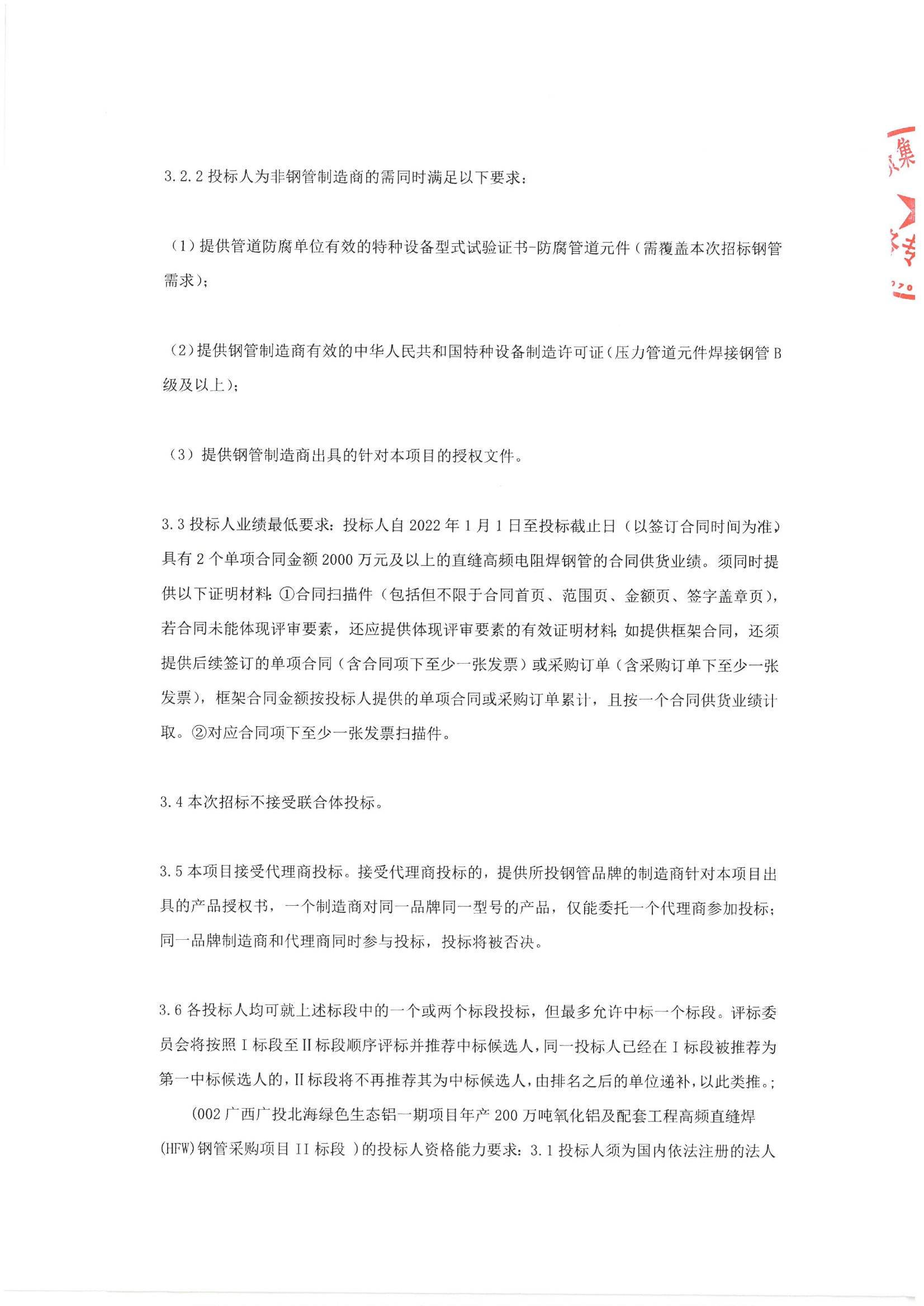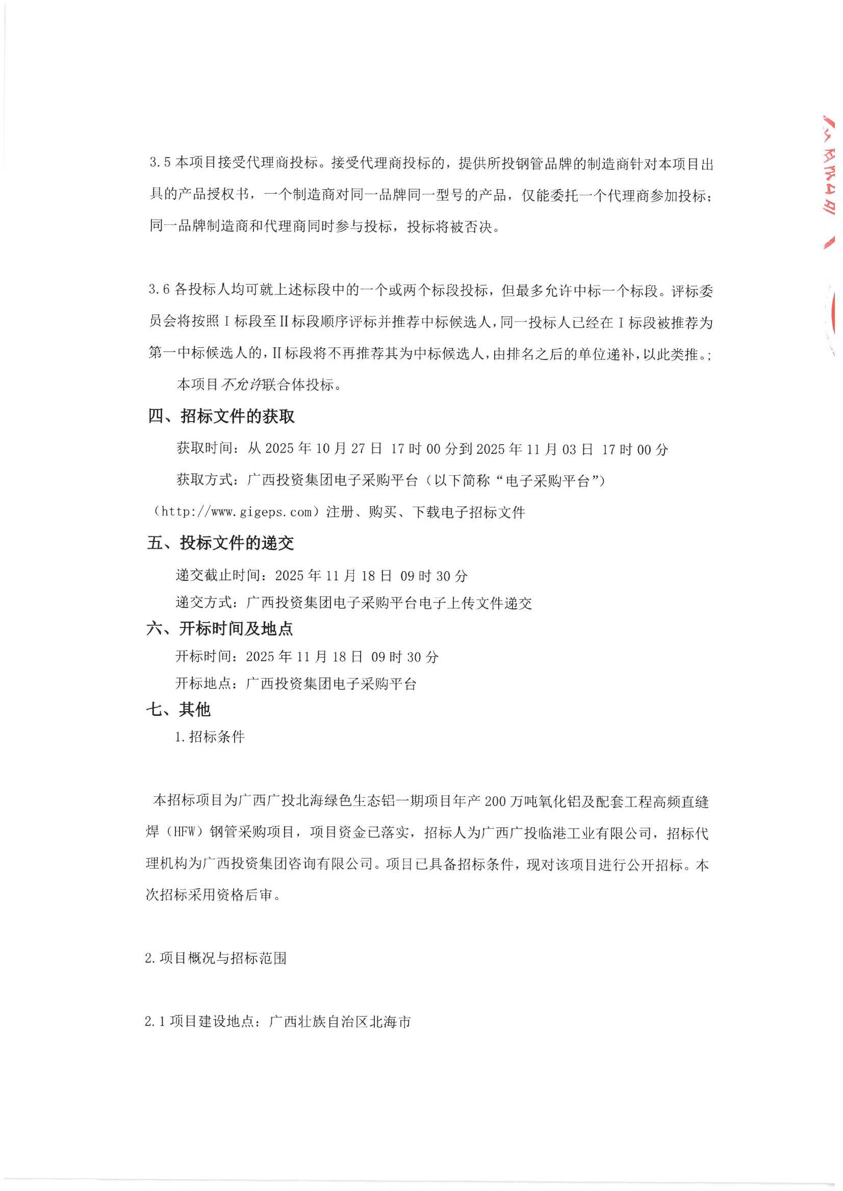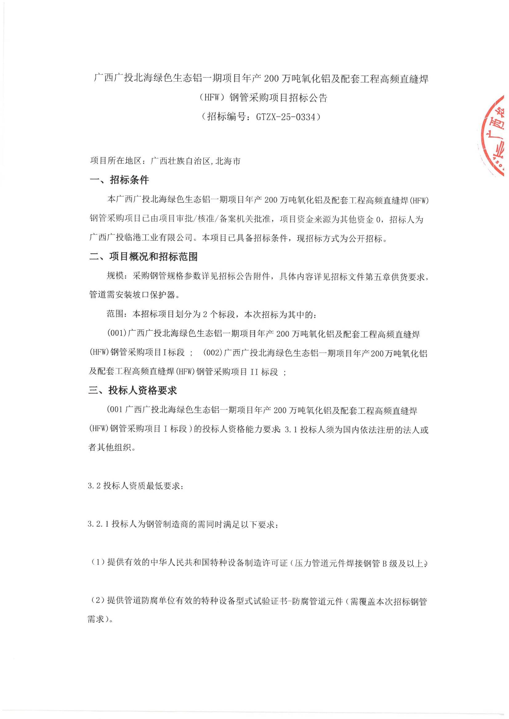 廣西廣投北海綠色生態鋁一期項目年產200萬噸氧化鋁及配套工程高頻直縫焊(HFW)鋼...