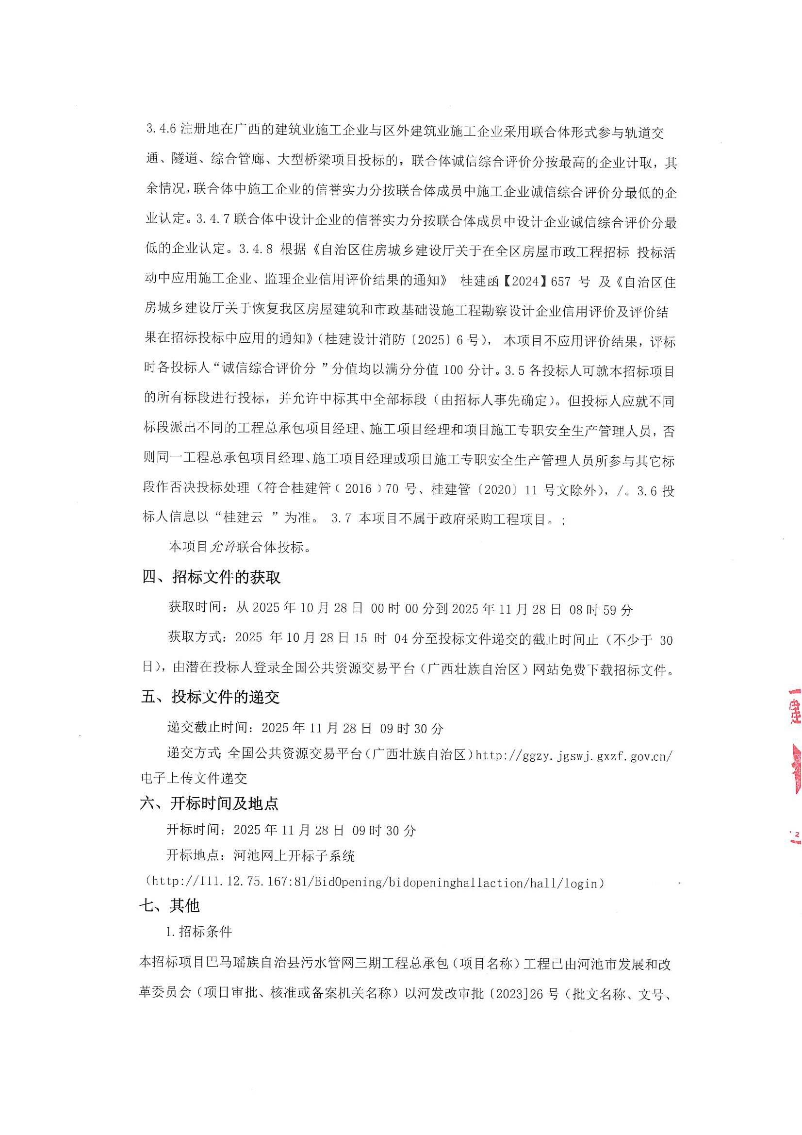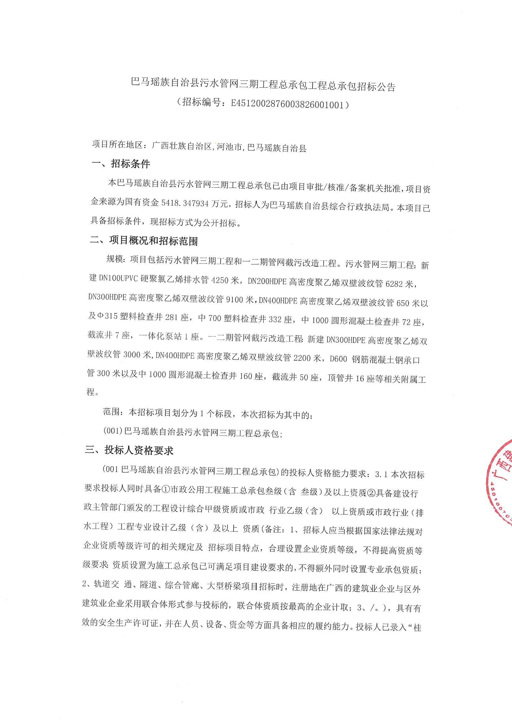 廣西巴馬瑤族自治縣污水管網三期工程總承包工程總承包招標公告