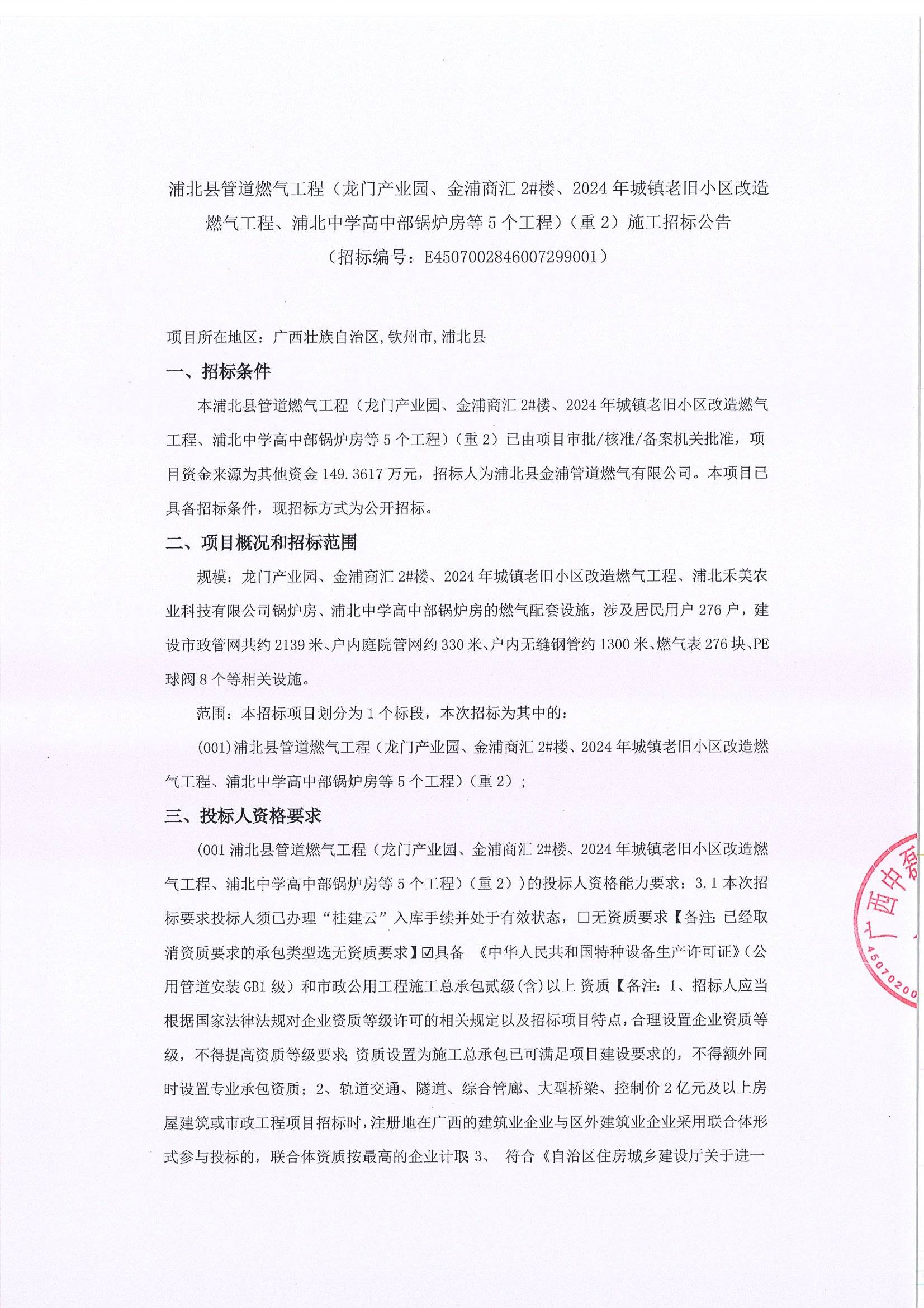 廣西浦北縣管道燃?xì)夤こ?龍門產(chǎn)業(yè)園、金浦商匯2#樓、2024年城鎮(zhèn)老舊小區(qū)改造燃?xì)夤こ?..