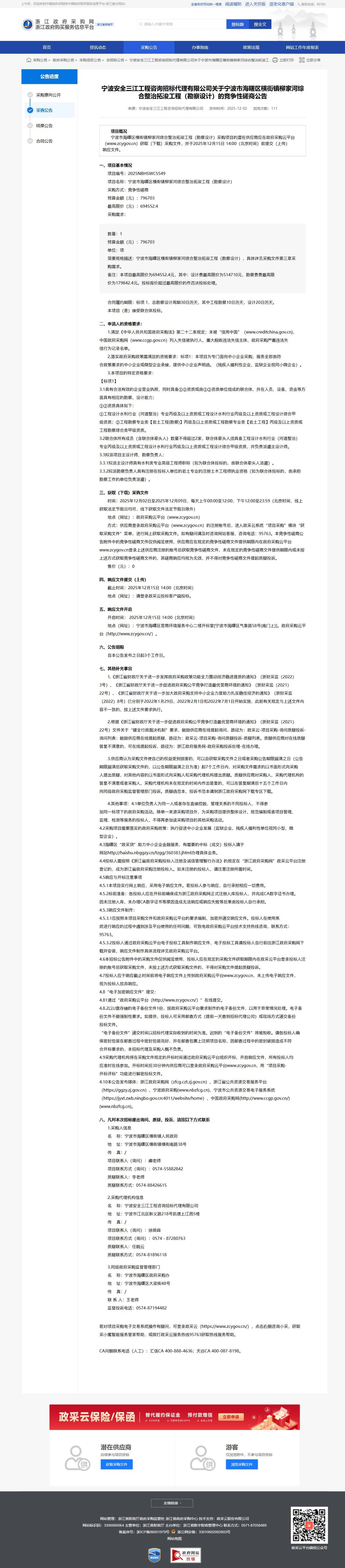 - 采購需求:寧波市海曙區橫街鎮柳家河綜合整治拓灘工程勘察設計,具體詳見采購文件第三章